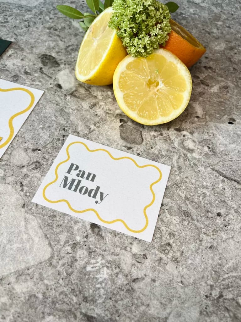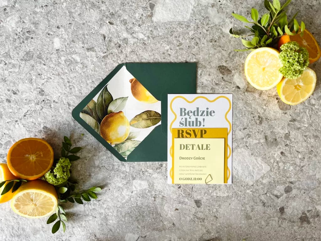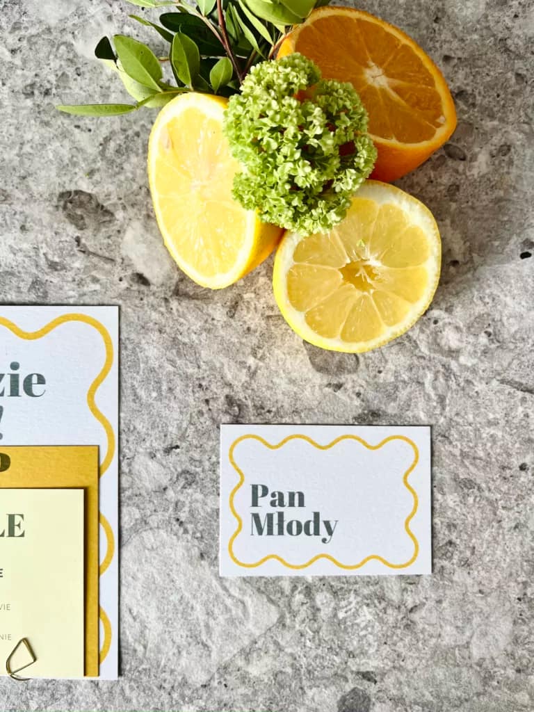 Do wybranego wzoru zaproszeń istnieje możliwość zamówienia pozostałych dodatków papeteryjnych takich jak: winietki, zawieszki na alkohol, numery stołów, menu, księga gości, czy plan stołów.