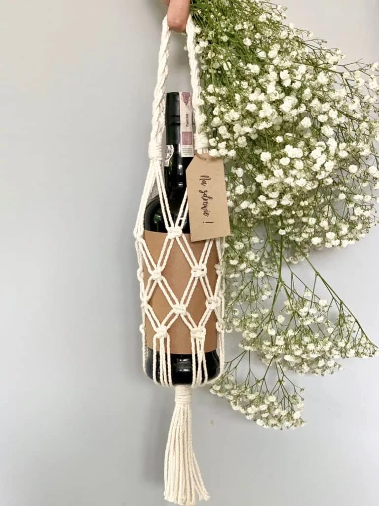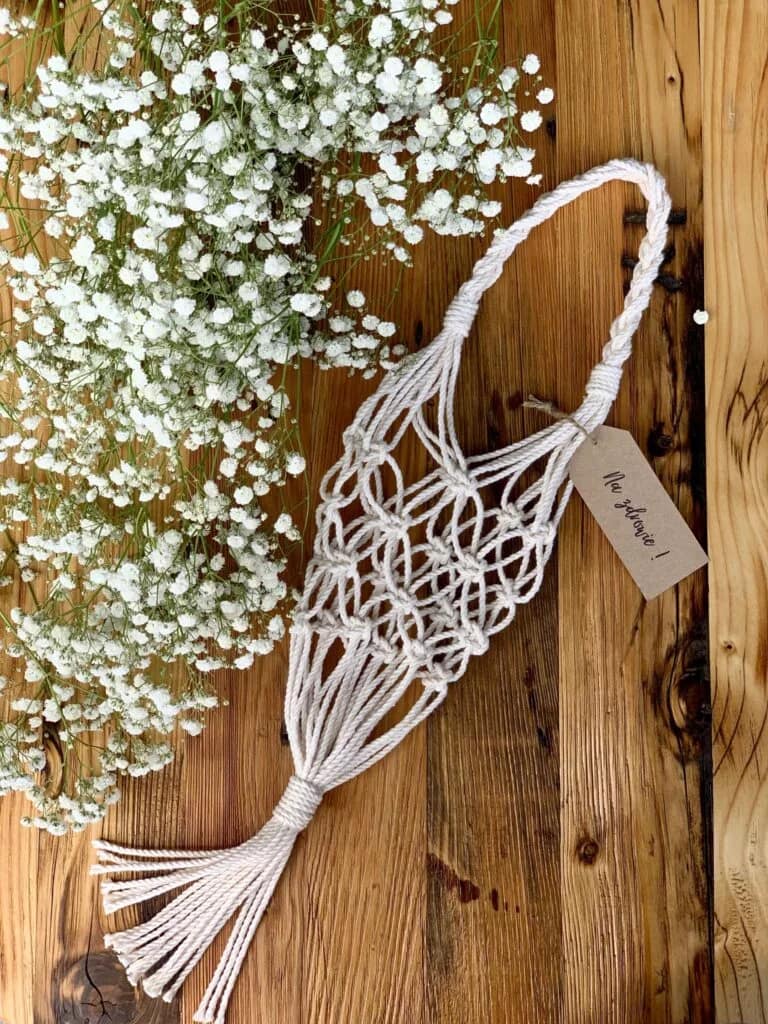 Torba na butelkę z makramy. Ręcznie wykonana z pasją i sercem.