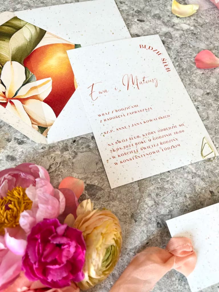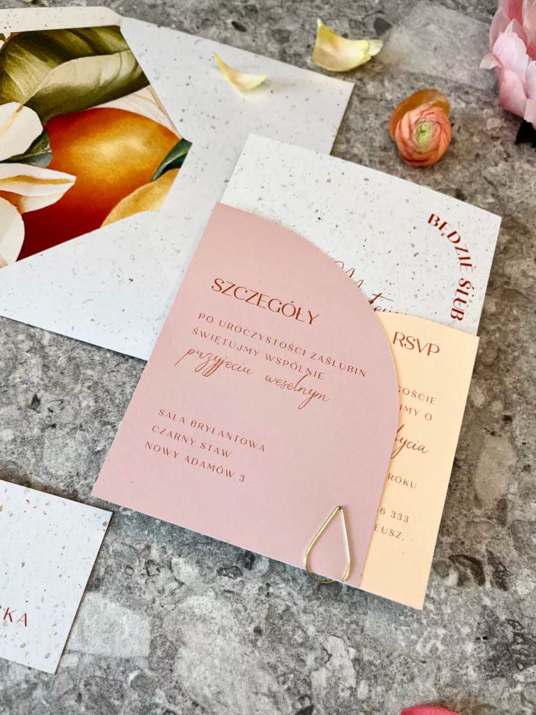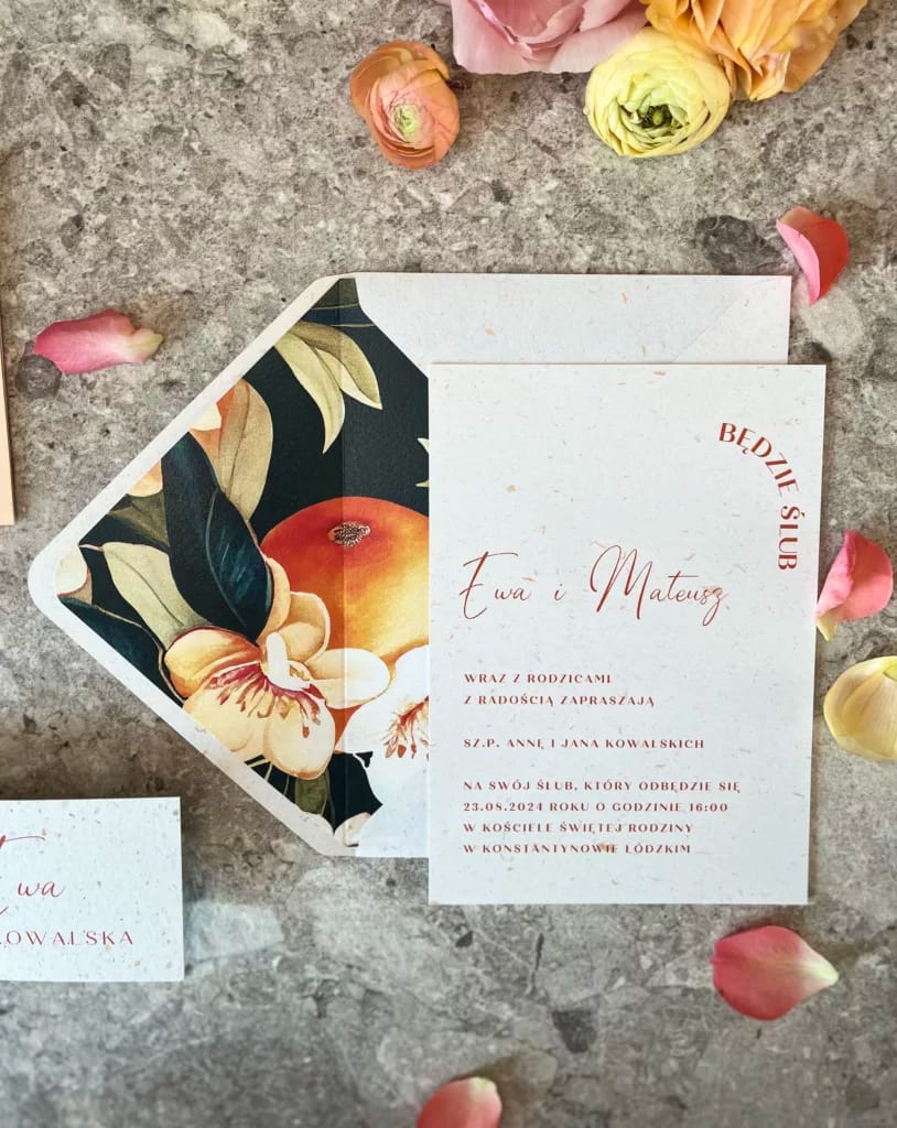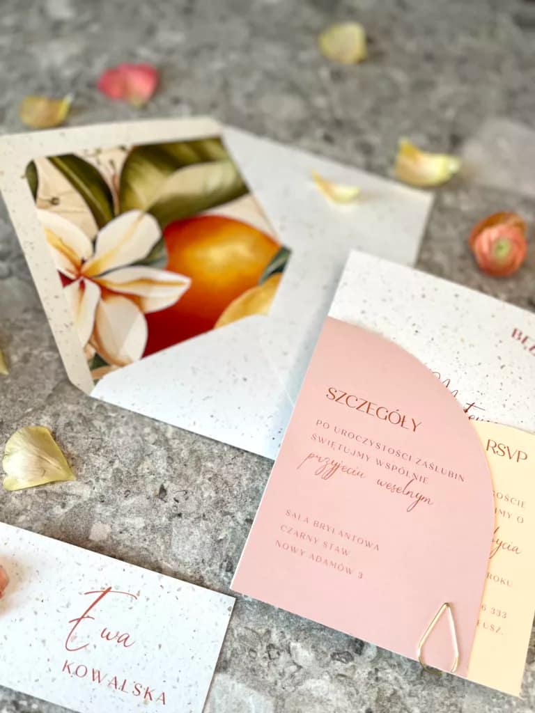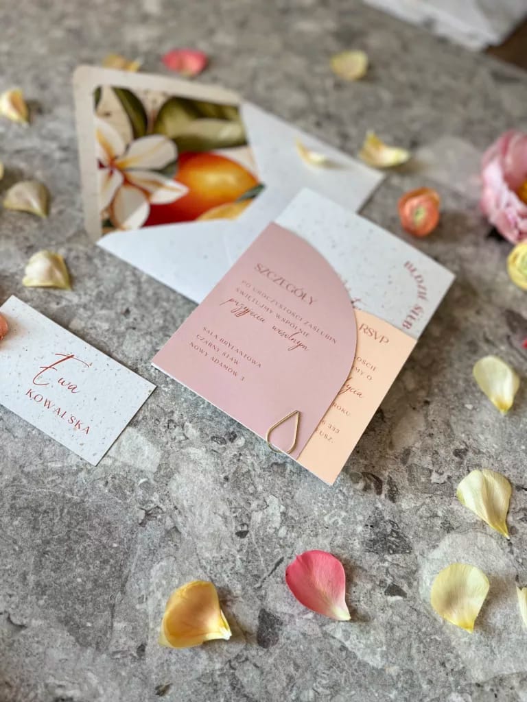 Wszystkie nasze zaproszenia są w pełni personalizowane. Po złożeniu zamówienia otrzymają Państwo maila z formularzem do uzupełnienia wszystkich niezbędnych informacji oraz listy gości. Jesteśmy w stałym kontakcie z naszymi klientami, aby jak najlepiej dopasować papeterię ślubną do ich oczekiwań. Napiszcie do nas, jeśli chcecie dowiedzieć się więcej -> kontakt@cudenka-slubne.pl.