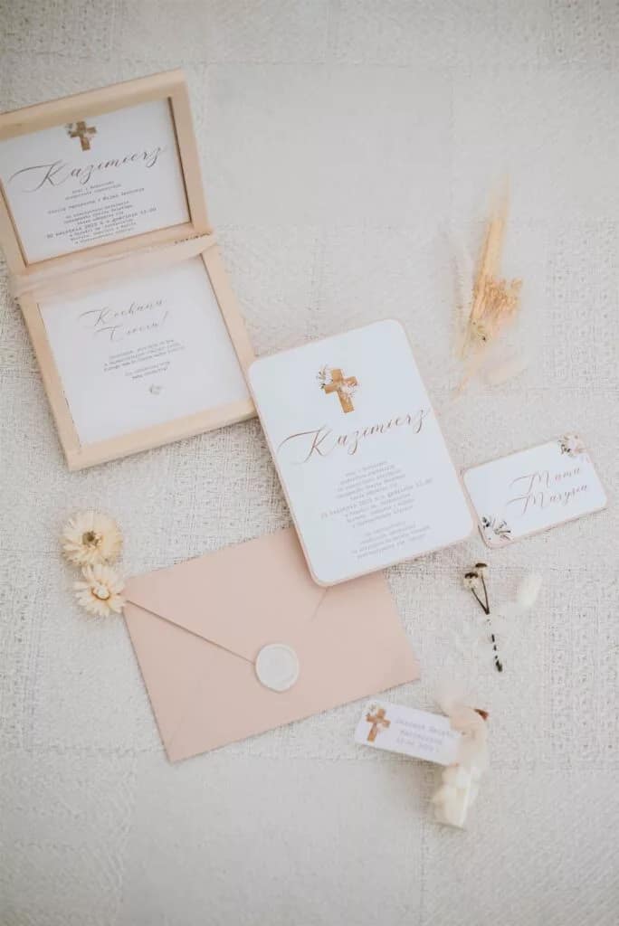 •    •  Dodatki i dekoracje ślubne i weselne, Kategorie  •  Zaproszenia na chrzest